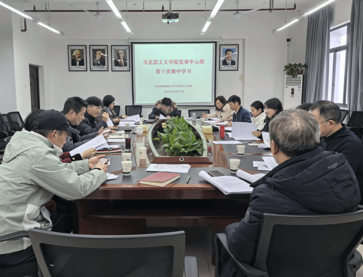 12月27日下午,马克思主义学院党委理论学习中心组在博文楼南1010会议室开展2024年第十次集体学习,会议由学院党委书记邓集文主持,学院党委委员、李雄光、各支部书记、教研室主任参加学习。