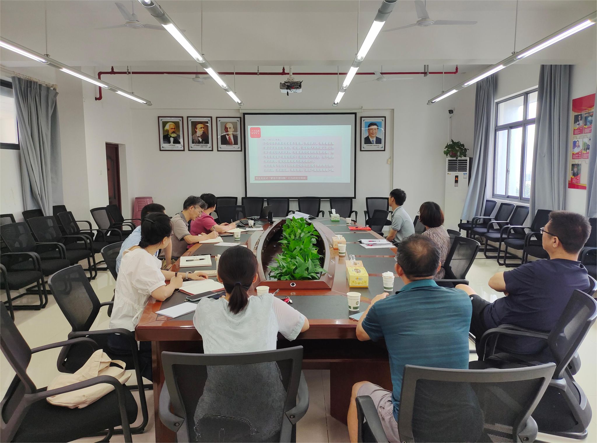 7月15日上午,马克思主义学院党委理论学习中心组在博文楼南1010会议室开展2024年第七次集体学习,会议由学院党委书记邓集文主持,学院党委委员、李雄光、姚遥、各支部书记参加学习。