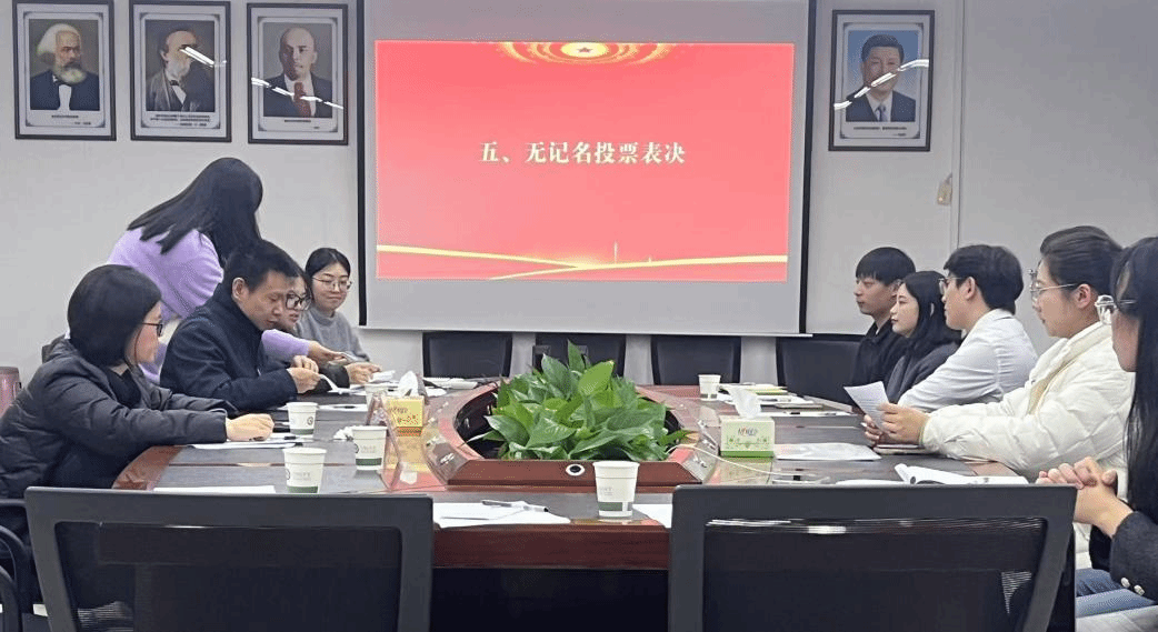 2024年11月18日下午14:30,马克思主义学院研究生党支部在学院会议室博文楼南1010召开了讨论接收预备党员支部大会,本次会议由研究生党支部副书记李昕珂主持,研究生党支部书记佘凯旋老师、刘菁老师、谭诗杰老师、研究生党支部全体党员、发展对象参加会议。