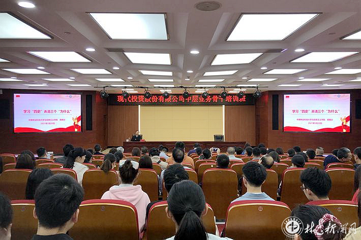 5月20日,继续教育学院在立德厅举办了以“学习‘四史’弄清三个‘为什么’”为主题的党史学习辅导讲座。学院全体党员及入党积极分子、现代投资股份有限公司中层业务骨干培训班党员参加学习。学校党史学习教育宣讲团成员、马克思主义学院党总支书记周预分主讲。
