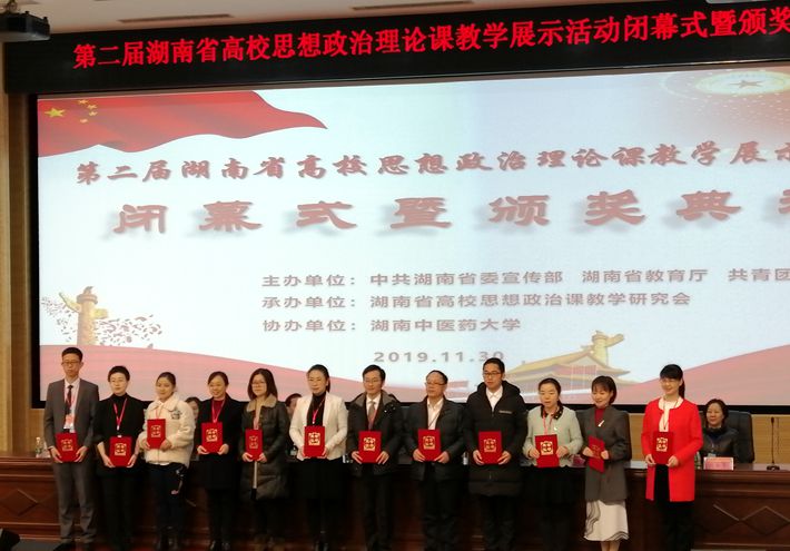 11月30日,由中共湖南省委教育工委、湖南省教育厅主办的“第二届湖南省高校思想政治理论课教学展示活动比赛(决赛)”在湖南中医药大学举行。来自省内各高校的73名思想政治理论课教师参加了比赛。我院青年教师刘菁、彭芳梅荣获二等奖,白雪霜老师获三等奖。