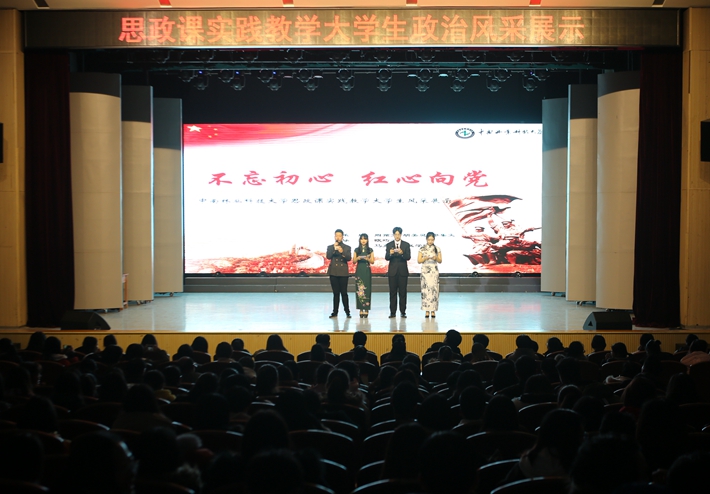 12月21日晚,我校音乐厅灯火璀璨,金色的党徽与鲜艳的红旗交相辉映,舞台的上方醒目地书写着“不忘初心、红心向党”,台下坐满、站满了该校的大学生们,场面热闹非凡。一场由马克思主义学院主办的别开生面的思政课实践教学大学生政治风采展示活动以晚会的形式在此拉开序幕。青春、理想、热情、奋发,大学生们在舞台上充分展示着他们在新时代思想政治理论课实践教学中的收获。