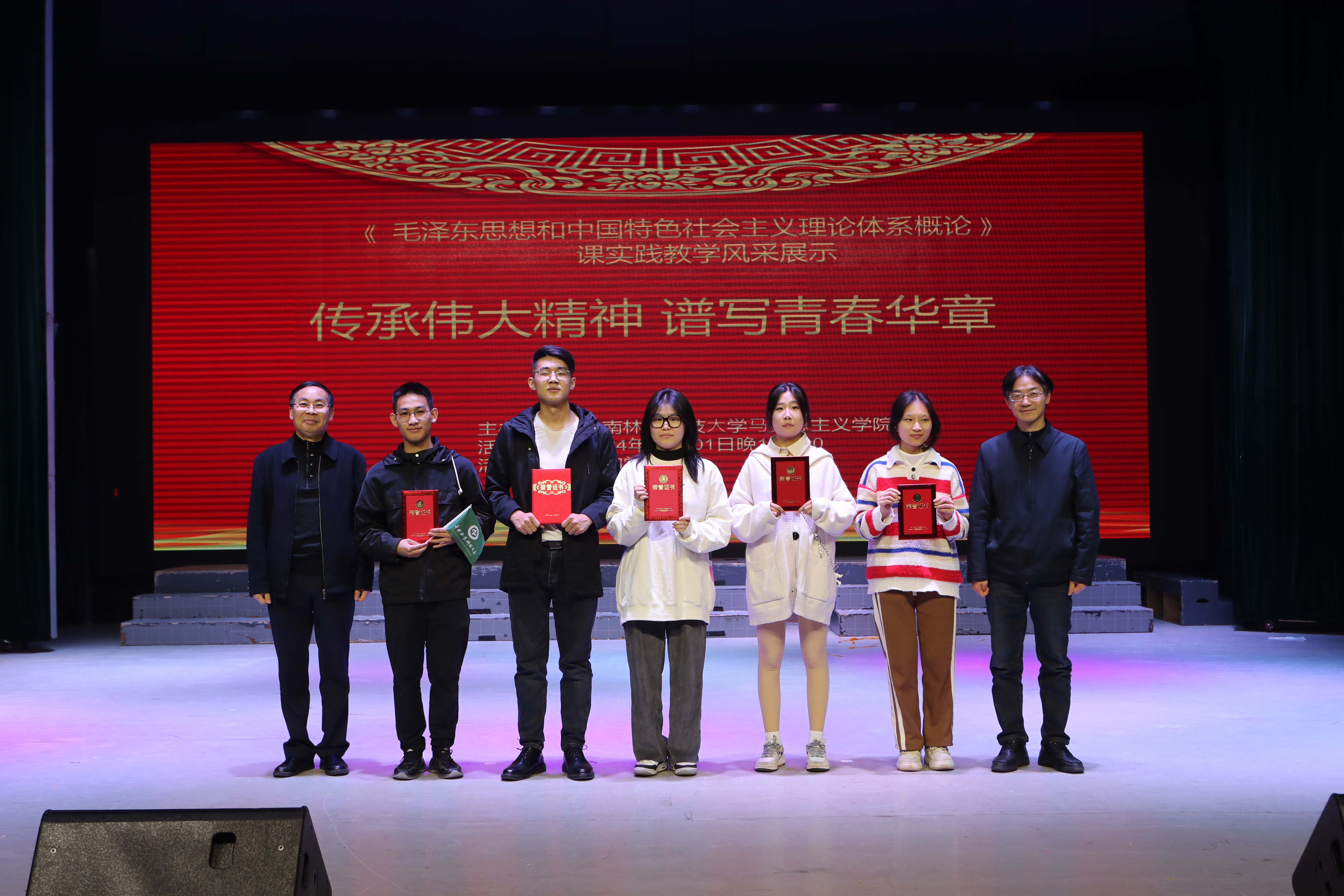 2024年12月1日晚,由马克思主义学院主办,《毛泽东思想和中国特色社会主义理论体系概论》课教研室承办的以“传承伟大精神 谱写青春华章”为主题实践教学风采展示活动在学校雅韵堂隆重举行,来自各学院400多名师生观看了本场演出。