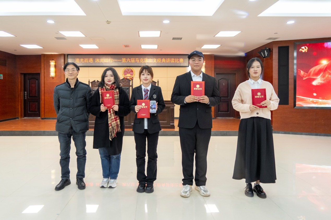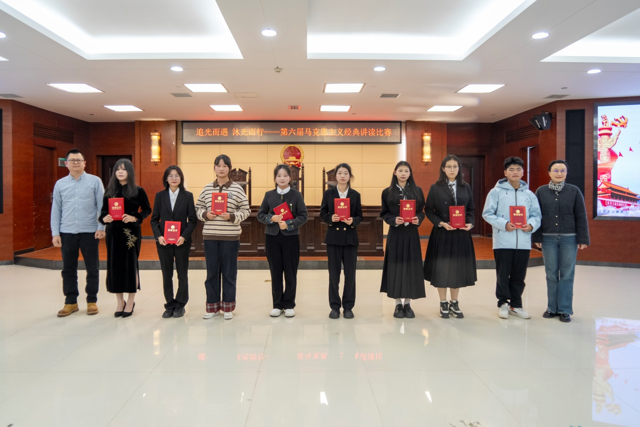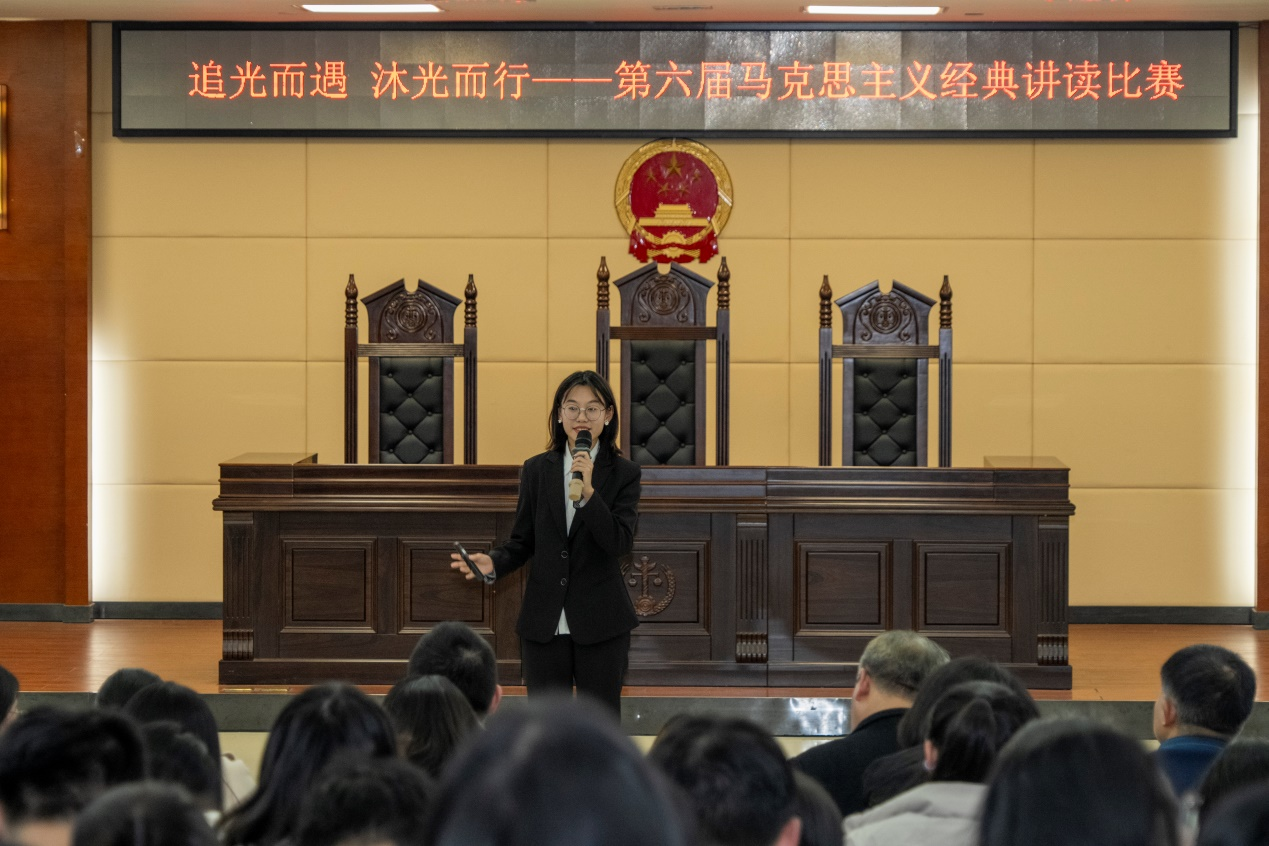 12月6日晚19:00,马克思主义学院主办的第六届马克思主义经典讲读比赛在博文楼模拟法庭隆重举行。