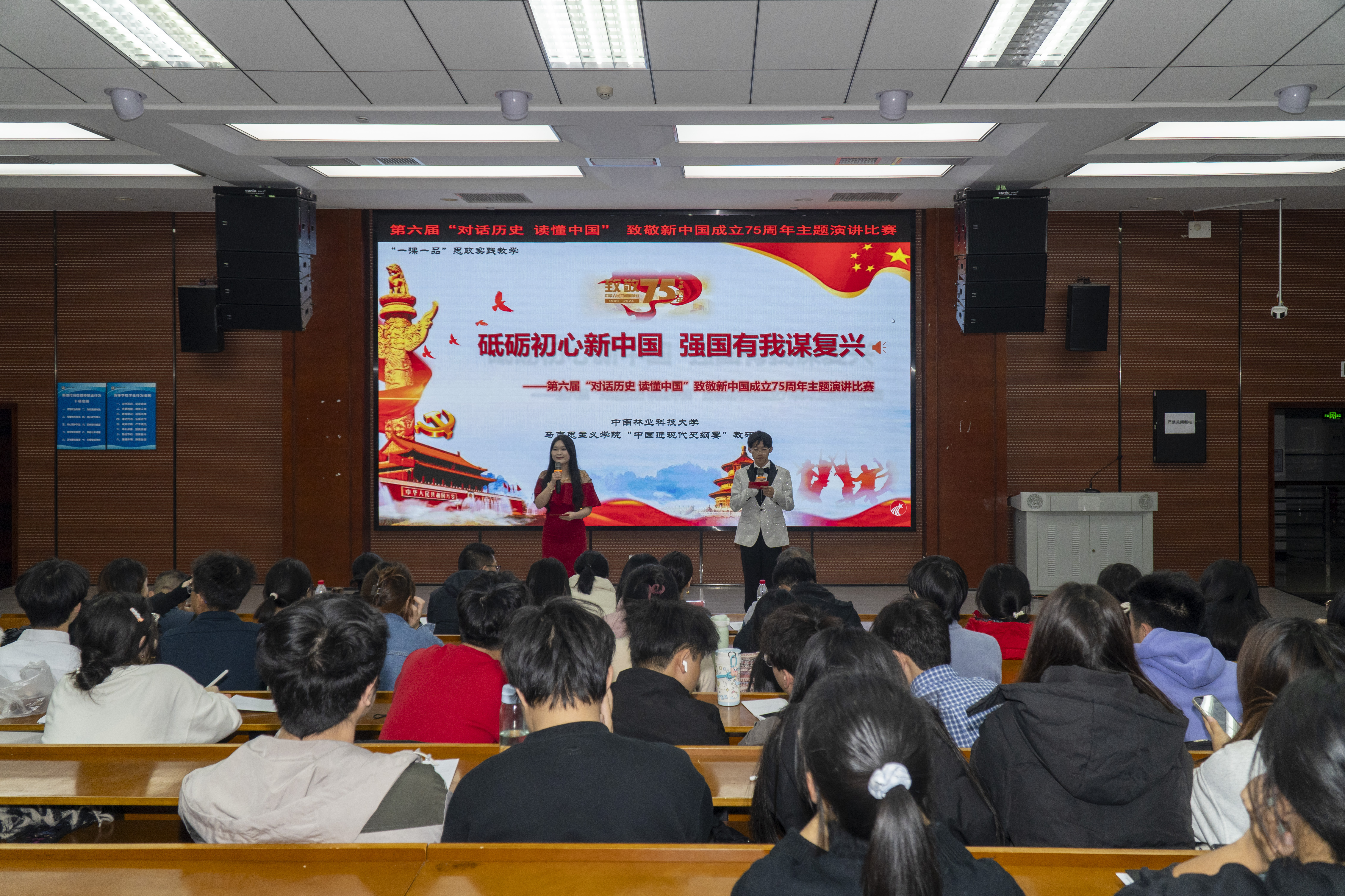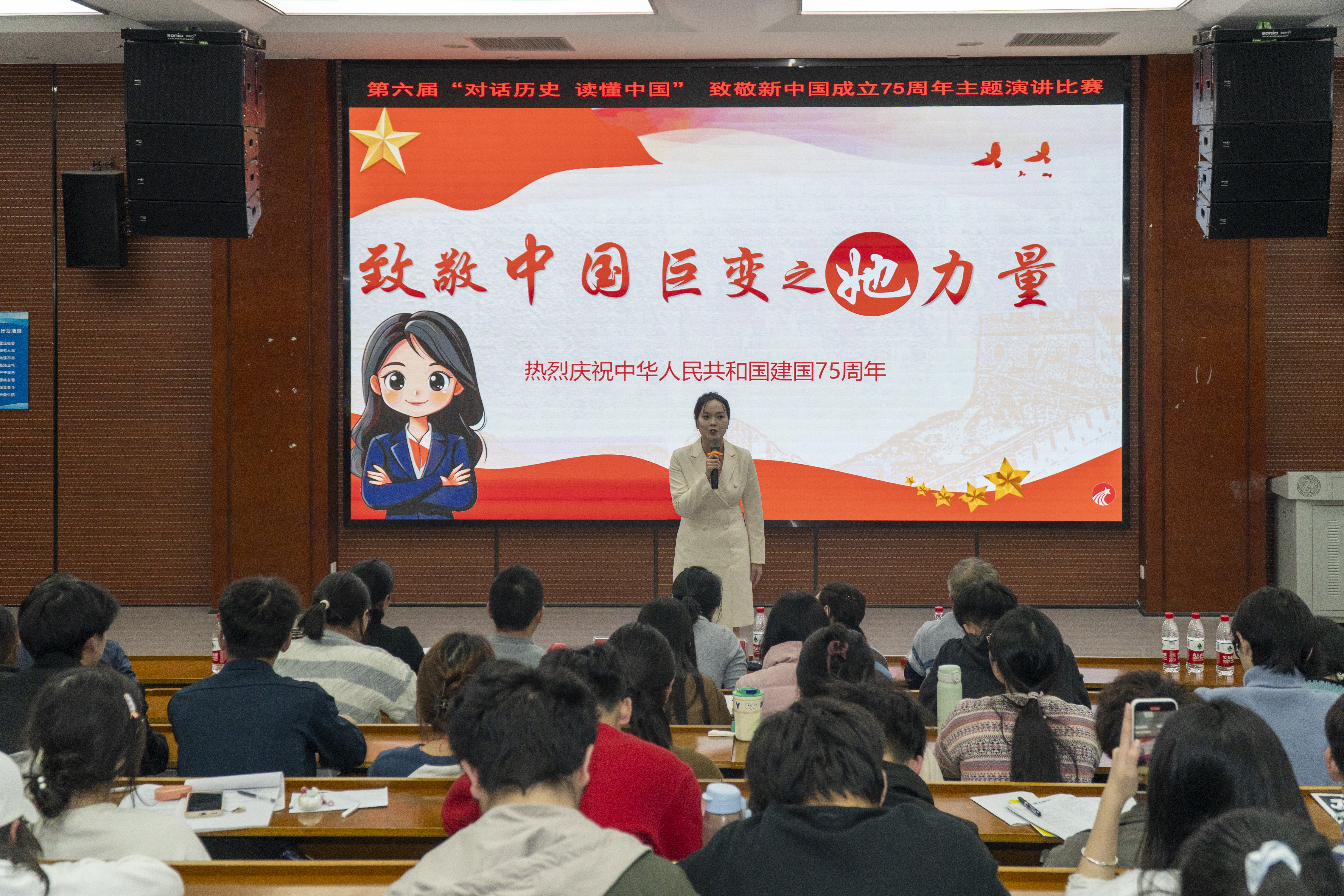 12月11日晚,中南林业科技大学第六届“对话历史 读懂中国”中国近现代史纲要课程实践教学主题演讲比赛在博文楼北304成功举办。此次活动围绕致敬新中国成立75周年主题展开,旨在通过指导学生深度对话历史,深入理解新中国从站起来、富起来到强起来的伟大历史进程,强化历史主动意识,勇担强国历史使命。