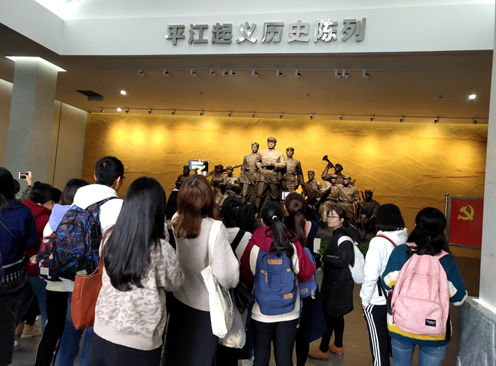 深秋十月,细雨绵绵,为了让当代大学生走近伟人彭德怀、腾代远、黄公略,了解伟人们的成长足迹、奋斗历程,领略无产阶级革命家的光辉事迹,马克思主义学院概论课教研室教师组织学生代表100人,于2018年11月10日赴平江起义纪念馆进行参观学习。