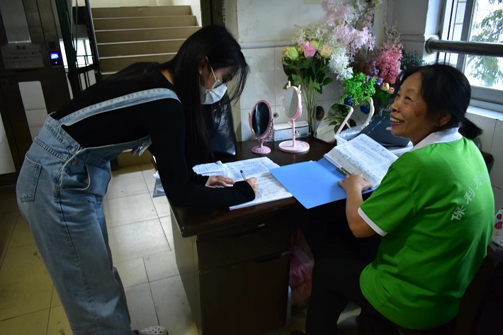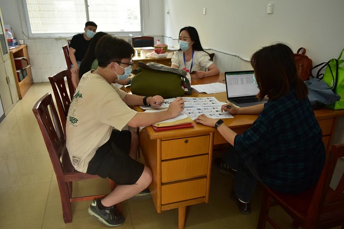 借助微信,志愿者与新生即时沟通,实现无缝衔接,全程提供“亲情式”贴心服务。接人组在门口等候,第一时间接过新生的行李;引导组带领新生到办公室进行信息核对;核验组对新生材料进行核验并引导新生填写信息;搬运组负责将行李送到新生宿舍。
