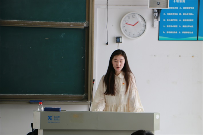 “此次向大家宣讲,让我对井冈山精神有了更加深入的理解。我在查找资料的时候,几度被革命前辈们的精神感动,不禁流下眼泪。当我走到台前,那么多同学坐在那里看着我,我也很紧张。但是一讲起革命前辈们的故事,我就感觉有股力量在我身体里流动。最后,听到同学们的掌声,我很骄傲。”李一鸣在宣讲中,对井冈山精神有更进一步的认识,自己的理想信念也更加坚定。