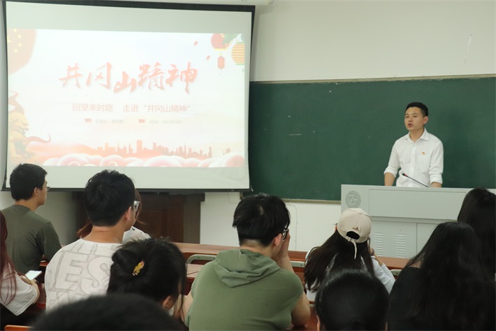 风雨红旗世代扬,革命精神代代传!为弘扬井冈山精神,加强大学生们对井冈山精神的理解,以实际行动传承井冈山文化、续写中国精神。全国大学生井冈山志愿宣讲团万马奔腾宣讲团以“回望来时路,走进‘井冈山精神’”为主题,于6月13日晚在德润楼415室开展宣讲活动,本次宣讲对象为各学院本科学生代表。
