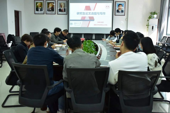 10月12日下午,我院在博文楼南1010会议室举办“研究生论文选题与写作”专题讲座,此次讲座邀请湖南大学马克思主义学院的副院长吴增礼教授为大家授课。本次活动由副院长邓集文主持,2021级全体研究生及部分教师参加活动。