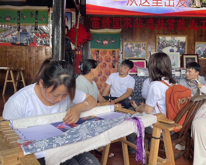 6月30日,为深入了解十八洞村产业建设,在实践中感悟乡村振兴,中南林业科技大学党史青年史宣讲团开展实地调研,与花垣县十八洞村苗绣特色产业专业合作社与养蜂产业合作社创业带头人进行深入交谈。