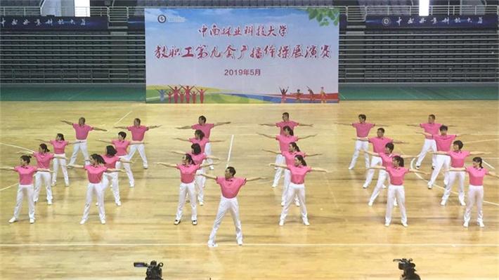2019年5月14日下午,教职工第九套广播体操展演赛在学校体育艺术馆举行。来自全校27个分工会1200多名教职工参加了展演。校党委副书记、校工会主席秦立春宣布展演赛开始并为获奖队颁奖,校工会常务副主席陈树生主持展演活动。