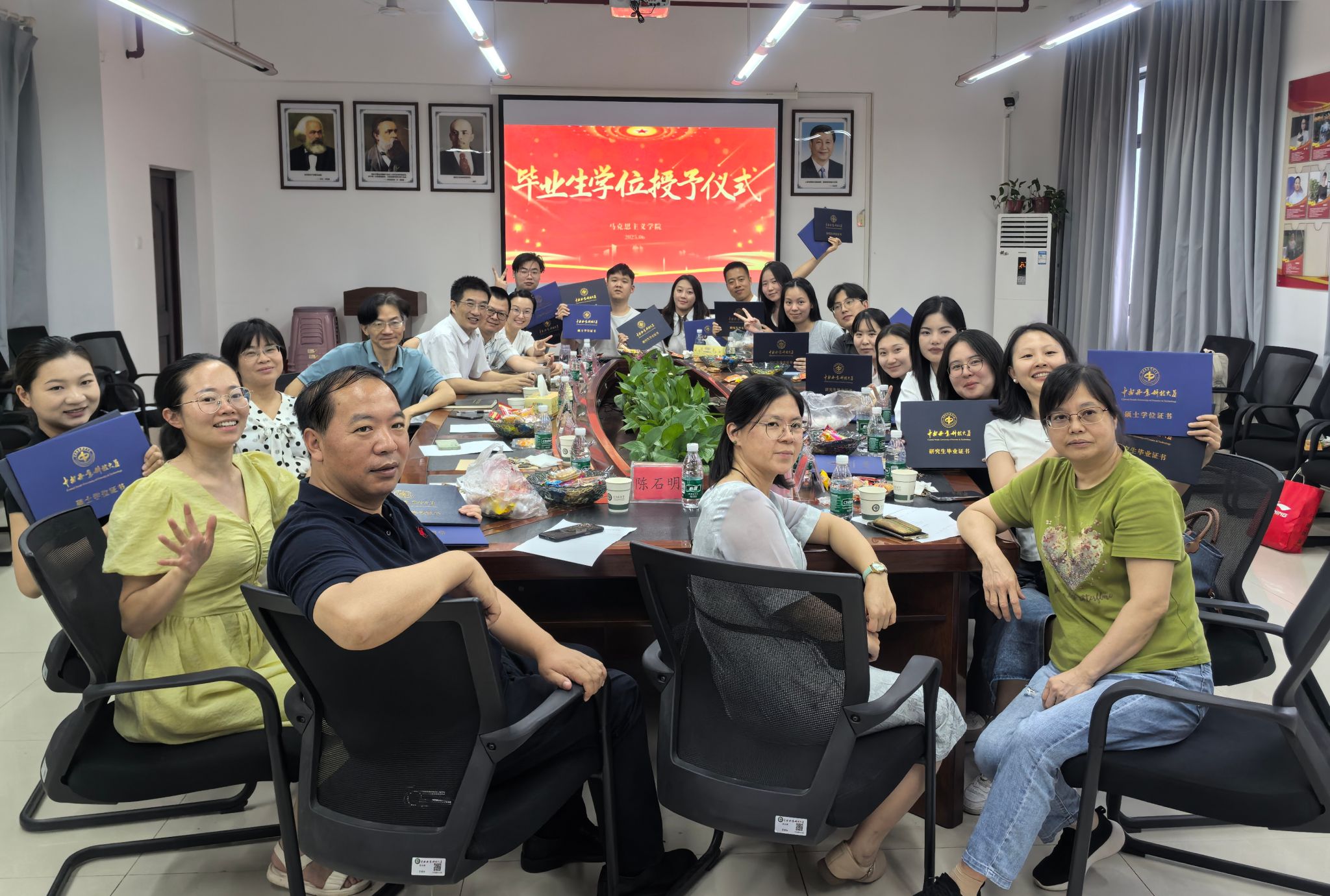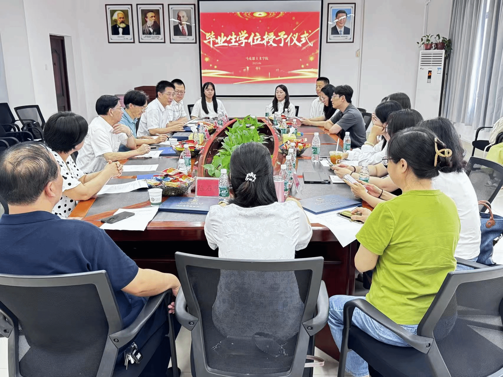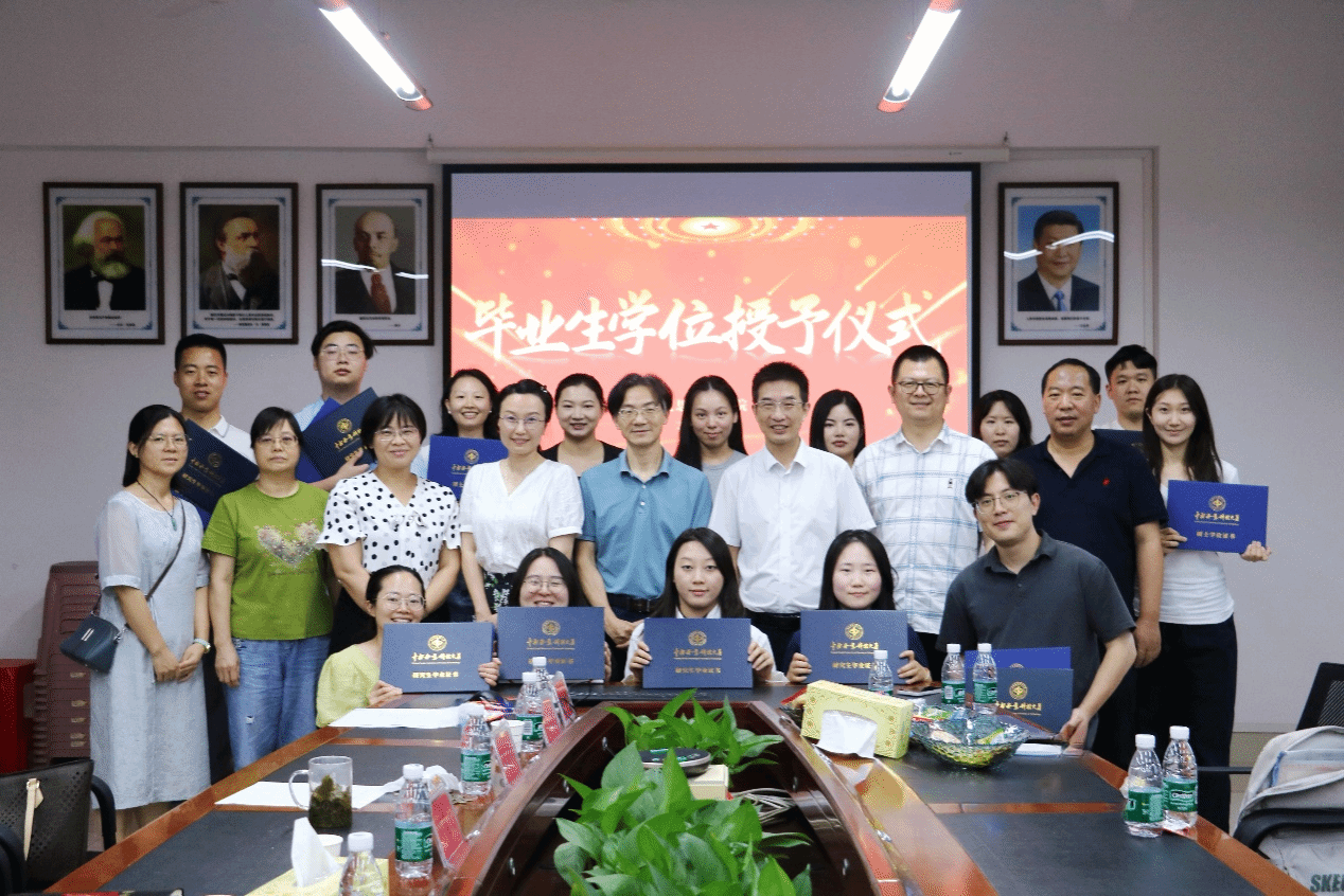 6月11日下午,我院在博文楼南1010会议室举行2025届硕士研究生学位授予仪式暨毕业座谈会。学院党委书记邓集文,党委副书记张赓,副院长孙欢、姚遥,硕士生导师杨鑫铨、徐保风、陈石明,团委书记刘菁,研究生秘书尹雪文,以及2025届全体毕业生和2023、2024级研究生代表参会。会议由副院长姚遥主持。