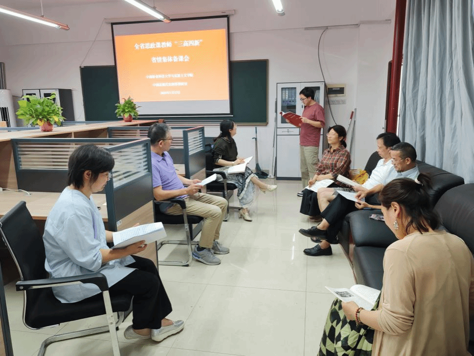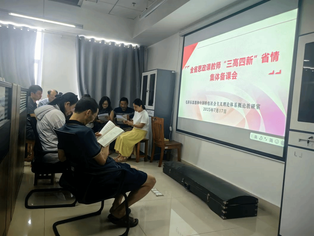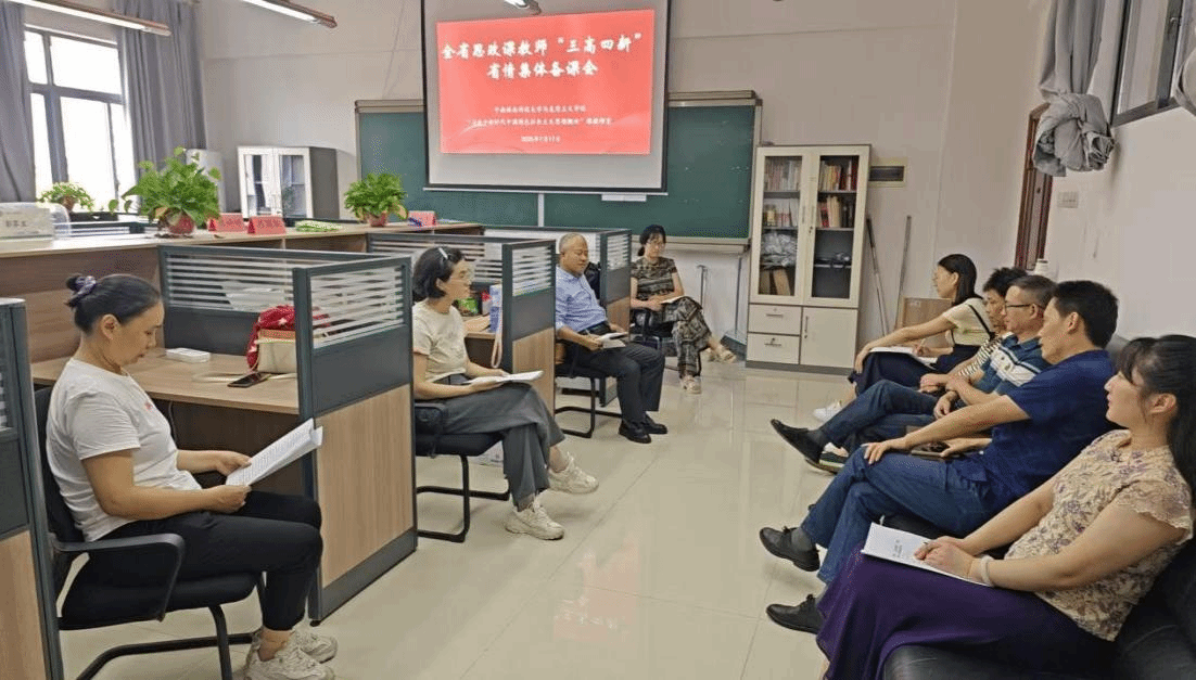 7月16日至7月17日,我院全体教师参加了由中共湖南省委教育工委、湖南省教育厅主办,湖南大学承办的“全省思政课教师‘三高四新’省情集体备课会”。我院高度重视此次集体备课会精神的贯彻落实,分别于17日下午组织各教研室进行分组研讨,7月18日组织全体思政课教师进行集中研讨。
