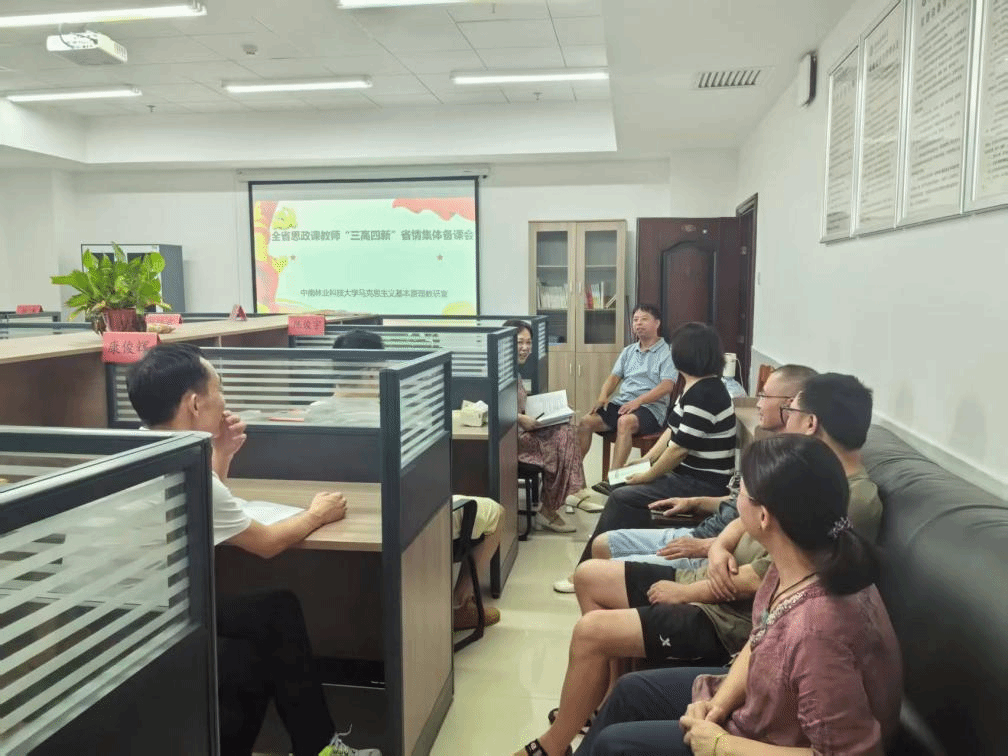 在分组研讨中,“习近平新时代中国特色社会主义思想概论”教研室的老师们认为,此次集体备课会是打造湖南省高校思政课建设品牌的又一有力举措,对推进我省思政课建设内涵式发展具有重要指导意义。“毛泽东思想和中国特色社会主义理论体系概论”教研室围绕着提高政治站位、丰富思政课教学内容、创新思政课教学方式方法进行了深入的讨论。老师们表示,将深入学习贯彻落实好这次集体备课会精神,更新教学内容、创新教学方式,把省情、校情特色资源有效融入到思政课教育教学中,牢固树立品牌意识、特色意识,打造中南林思政课特色。