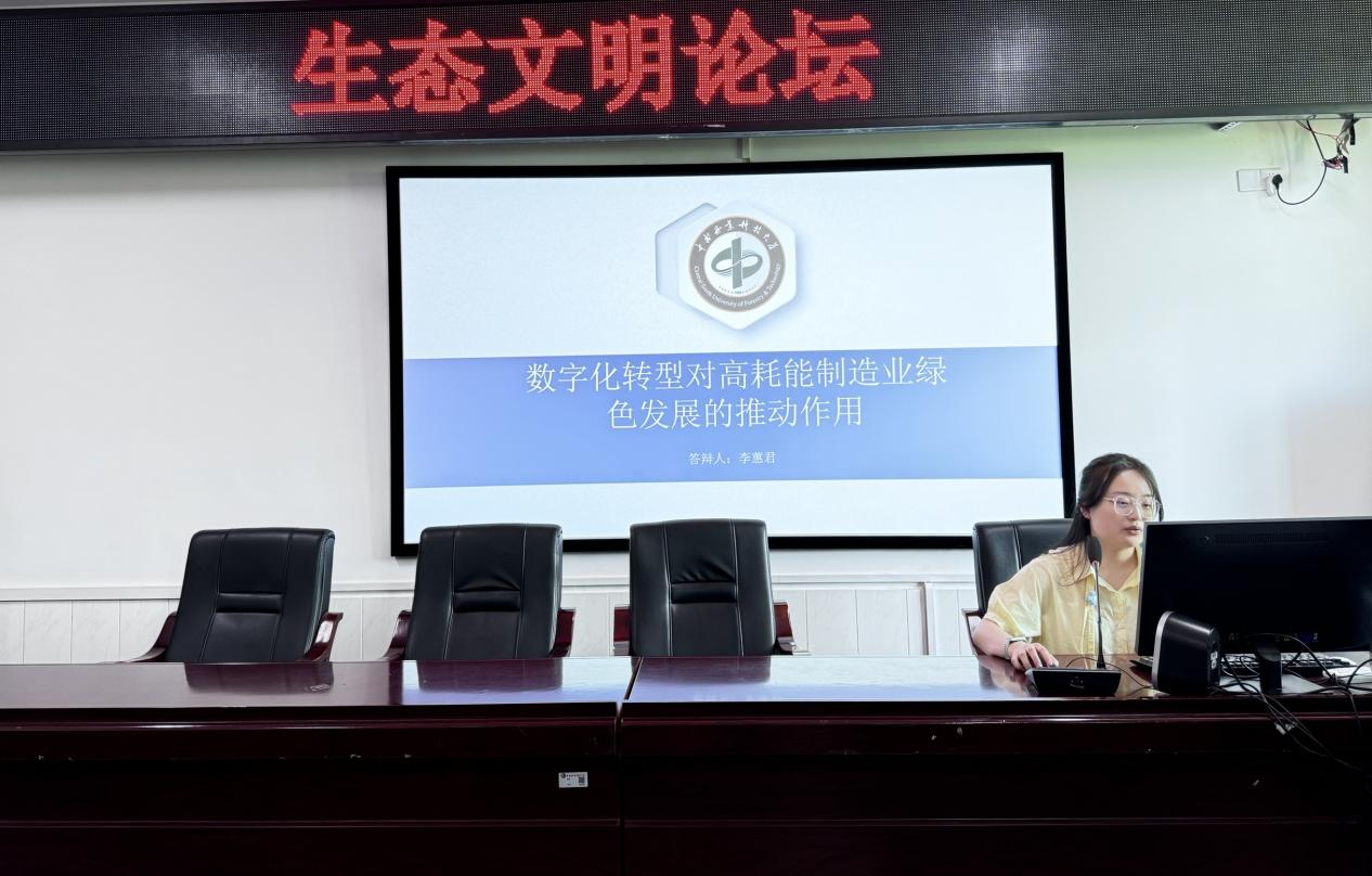 会议的第二阶段,获奖者围绕“生态文明与绿色发展”主题,结合自身研究成果进行现场PPT汇报展示。他们结合自己的专业,聚焦主题,围绕绿色生产力、数字化、乡村振兴、高校思政教育等相关问题分享了科研思路和研究成果。他们高水平的论文、精美的PPT、富有激情的报告,不仅让听众收获了知识,更感受到了学术探索的魅力,激励大家在自己的研究领域精益求精。