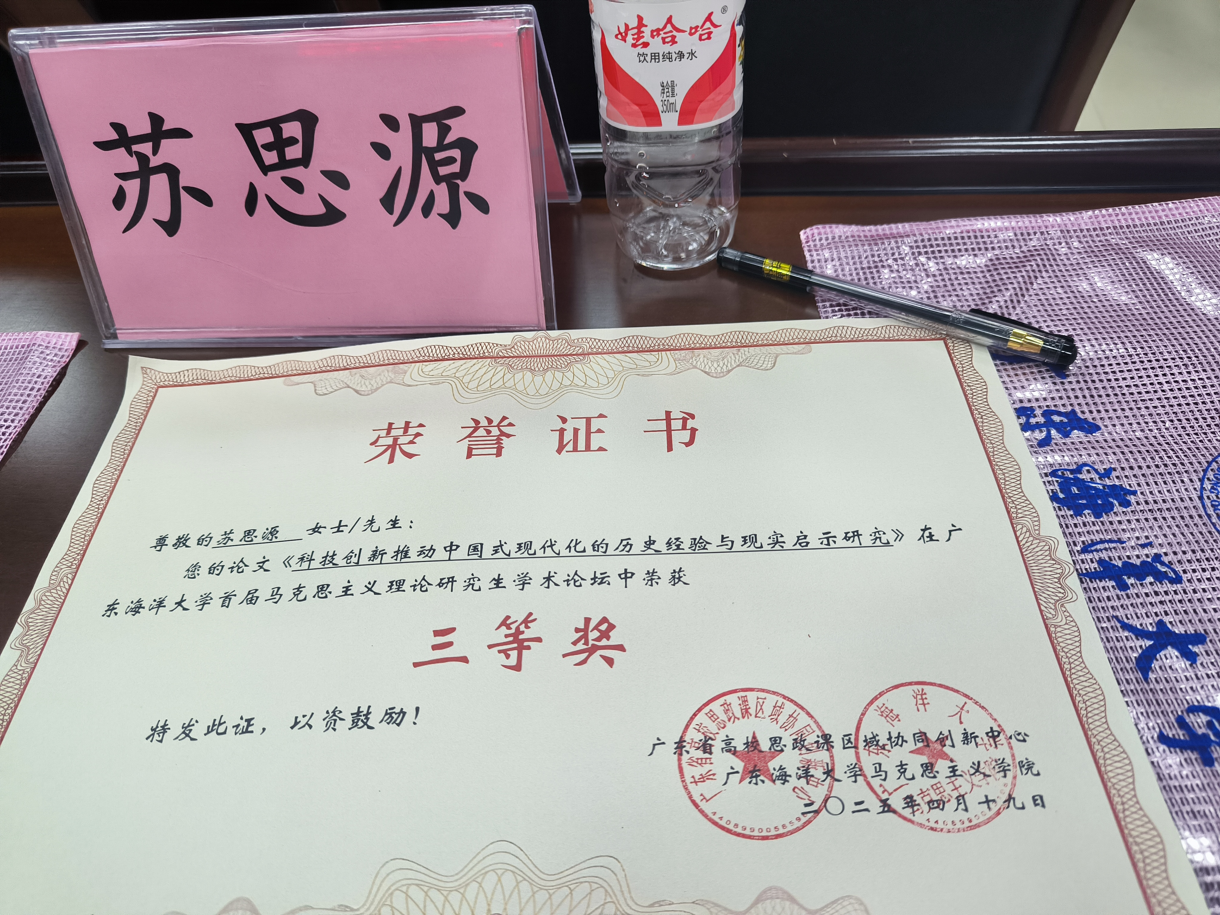 2025年4月19日,我院2024级马克思主义理论专业研究生苏思源以文入会受邀参加广东海洋大学2025年“校庆九十周年”系列活动之首届马克思主义理论研究生学术论坛。