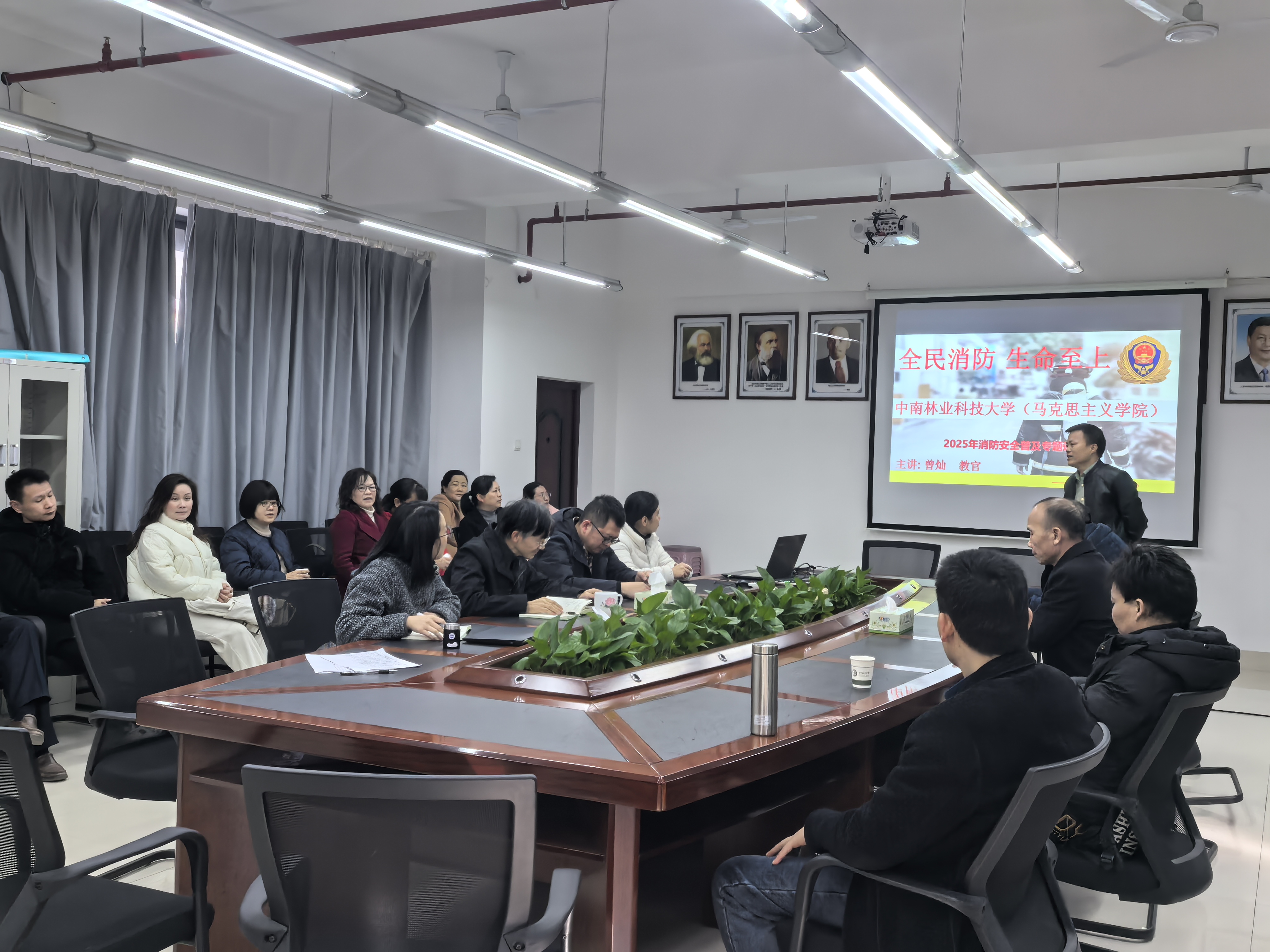 为增强师生消防安全意识,提升应急处置能力,1月15日,马克思主义学院特邀普消消防宣教中心的曾灿教官,举办了一场以“全民消防 生命至上”为主题的消防安全教育培训会。会议由学院党委书记邓集文主持,全体教职工参会。