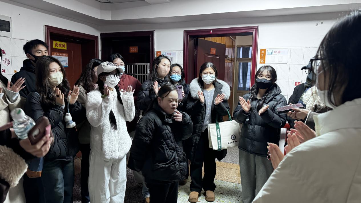 在参观娱乐室、手工室时,一群正在制作手工艺品的残障人士令我们动容。他们虽略显羞涩,但仍以灿烂的笑容和专注的姿态迎接我们。工作人员如数家珍地介绍他们的特长:有人能编织精美的手工艺品,其中有一位女士笔耕不辍,创作了两部小说,其中一部仍在连载。她的故事让我们深刻领悟:灵魂的丰盈从不因躯体的局限而失色,精神的火光足以照亮生命的暗角。走进宿舍区,一幕场景令人泪目:护工正耐心地为一名瘫痪儿童喂饭,孩子眼中流露的依赖与安宁,是对“大爱无声”最生动的诠释。而福利院的“小太阳”月月姐姐,更以她的热情感染了所有人。尽管身有残疾,她却主动为我们引路,用真诚的交流拉近心与心的距离。临别之际,她清唱了一曲《我和我的祖国》,歌声清澈嘹亮,饱含对家国的深情、对生活的热爱。在场者无不动容,掌声久久不息。工作人员说到:“她从小就喜欢唱歌,这是她最喜欢的娱乐方式。”