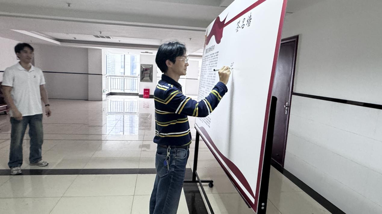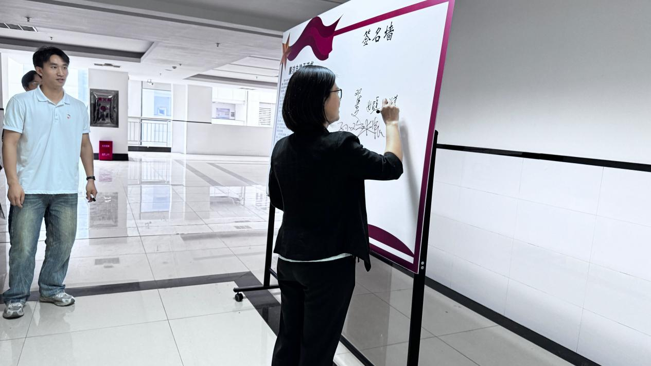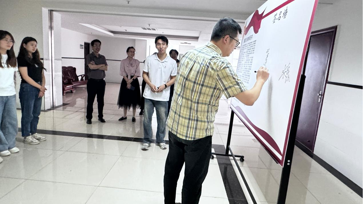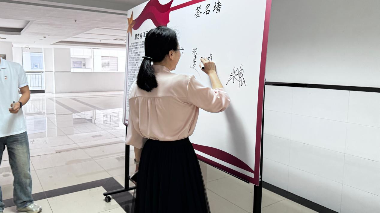 活动的第二阶段,学院领导率先垂范,在签名墙上郑重地签名,以实际行动表达对廉洁自律的坚定承诺。随后,学生们有序排队,认真地签下自己的名字,展现出积极响应廉洁号召、自觉遵守廉洁纪律的决心。一个个签名不仅是一份承诺,更是一份责任,激励着全体师生在今后的学习、工作和生活中,将廉洁自律内化于心、外化于行。