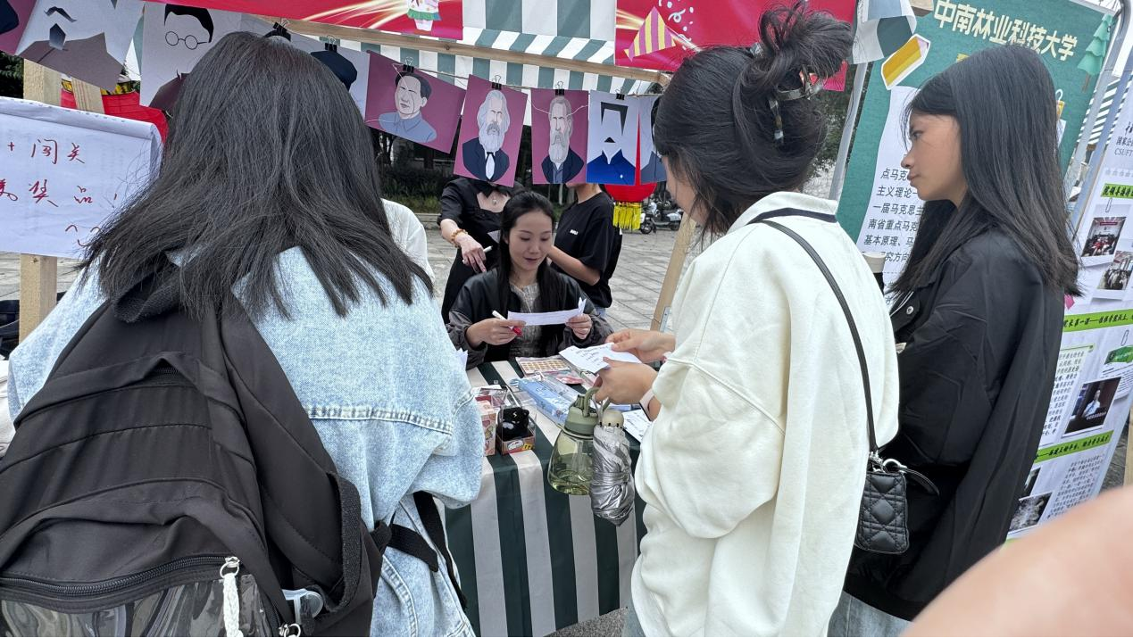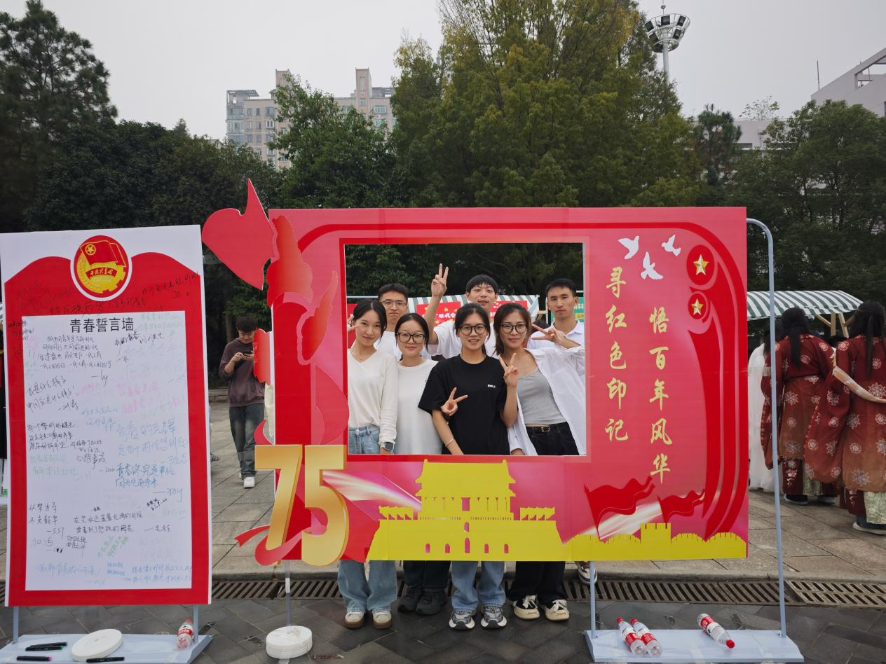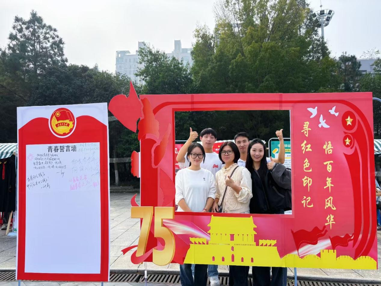 为喜迎双代会召开,营造浓厚校园文化氛围,让同学们了解双代会的同时展示学院特色,马克思主义学院11月15日在陶铸广场成功举办了“寻红色印记 悟百年风华”——铭党史,励青春;铸信念,强担当为主题的活动。此次活动旨在通过深入挖掘和传承红色文化,引领广大学生共同追寻那些镌刻在岁月长河中的红色印记,感受红色历史的厚重与伟大,进一步弘扬红色文化,传承红色基因。