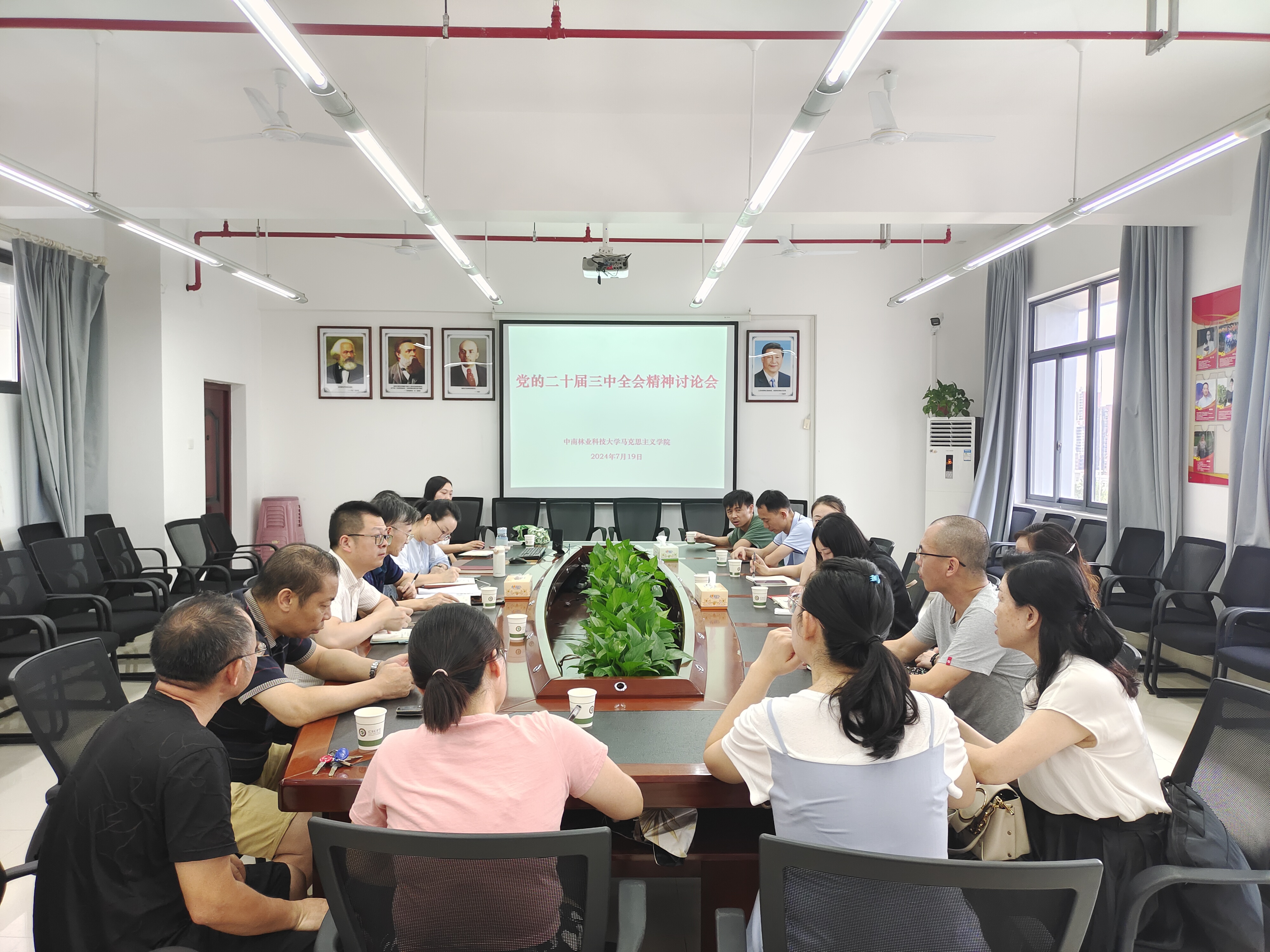 7月15日至18日,中国共产党第二十届中央委员会第三次全体会议在北京召开。为深入学习贯彻党的二十届三中全会精神,研究部署学习贯彻工作,7月19日上午,马克思主义学院在博文楼1010组织召开党的二十届三中全会精神专题研讨会。会议由学院党委书记邓集文主持,学院领导班子、学院各教研室专任教师以及科研骨干参加会议并作交流发言。