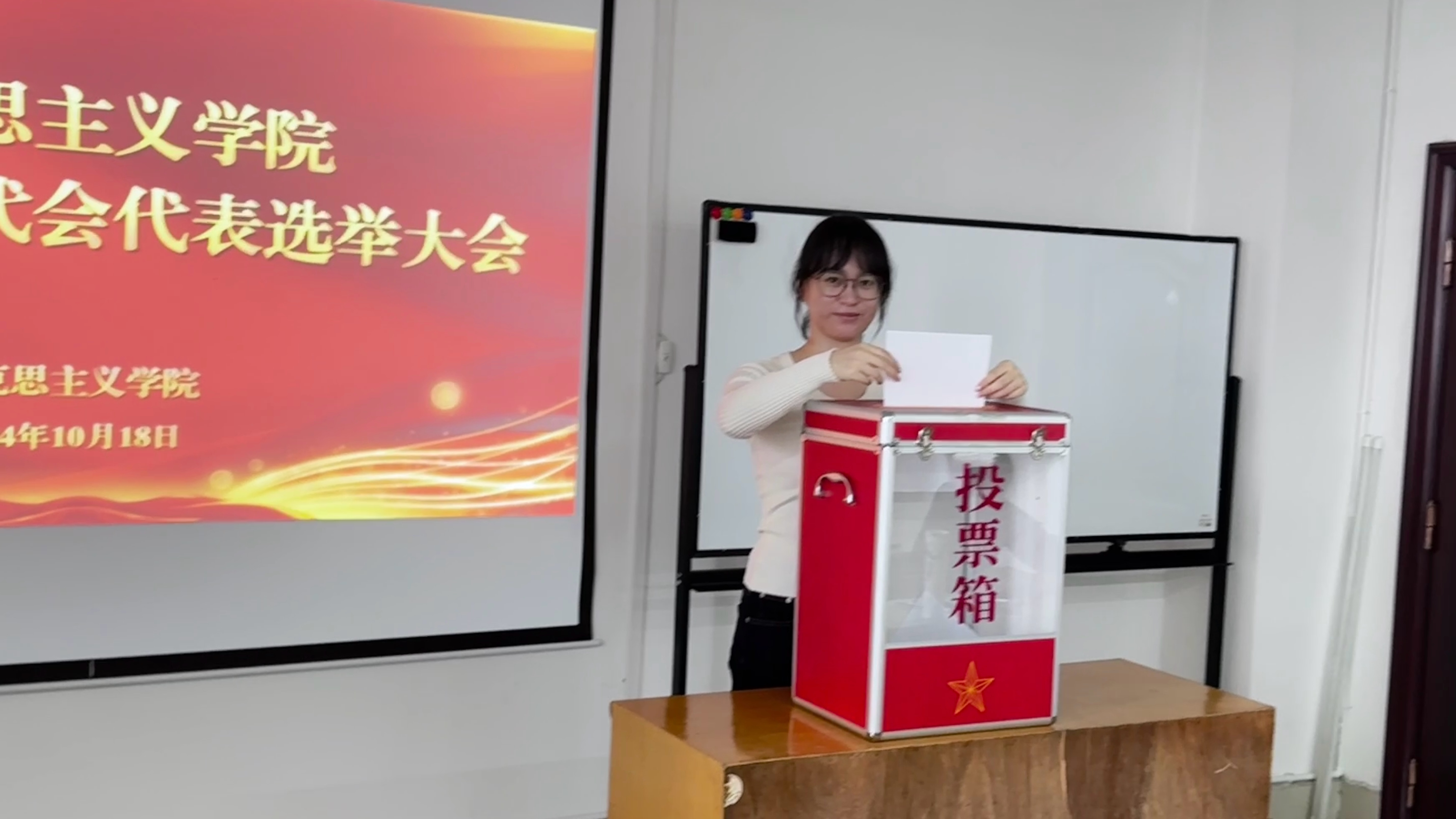 会上,刘涛首先向参会代表们传达了学校关于“双代会”代表选举的相关通知及文件要求,并对代表候选人名单产生过程及本次“双代会”代表选举办法进行了详细的说明。根据选举程序,参会代表人员使用举手表决的方式通过了选举办法和监票人、计票人建议名单。并在总监票人兰臻的主持下,查验票箱、发放选票、填写选票和投票等一系列环节均按照规定有序进行。最后,大会以无记名投票、差额选举方式,产生了马克思主义学院“团代会”及“研代会”代表共4人。