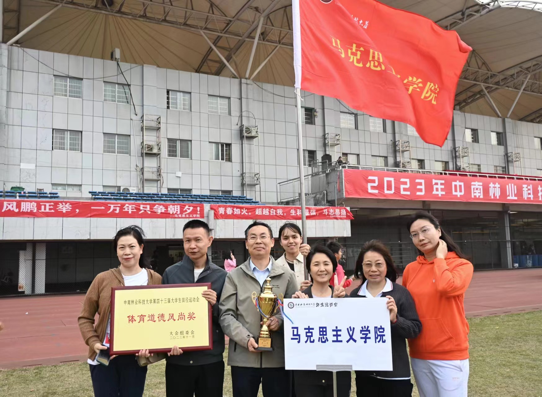 运动场上,马院师生们个个精神抖擞,英姿飒爽。他们一次次的突破自我,并取得优异成绩。其中,吴佳娣老师荣获铅球第二名;龙双喜老师斩获100米第三名;陈敬春老师和龙双喜老师在1000米比赛中分别获得第四名和第五名;向柯旖同学在女子标枪和女子铅球比赛中分别获得第二名和第三名的好成绩;曾云超同学获得男子铅球比赛第五名。在团体项目上,我院教职工也获得了较好成绩,在“精准投掷”和“连跳长绳”比赛中,都赢得了第三名。最终,我院教职工团体获得总分第八名、学生团体获体育道德风尚奖。