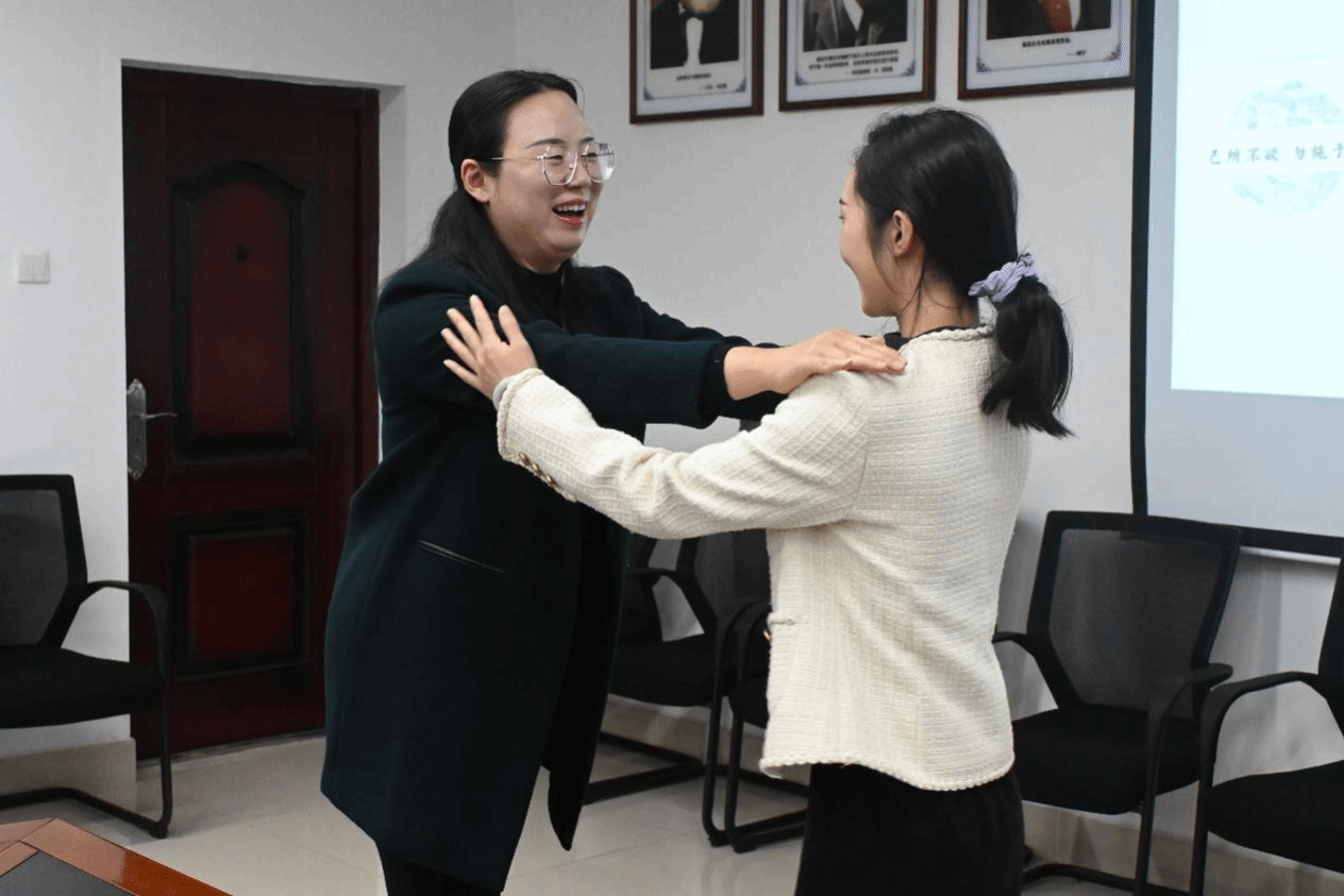 在讲座中,崔会长组织学生们参与了一个名为“一二三四”的小游戏,通过这个游戏引出为人处事的黄金法则——“己所不欲,勿施于人”。她指出,行为和形象礼仪能够真实地展现出个人的品味、精神风貌和人生态度,同时也客观地反映了人们对待交往对象的重视程度。随后,崔会长与同学们分享了行为礼仪的注意事项,包括微笑礼、目光礼、站姿礼、坐姿礼和接待礼等细节。