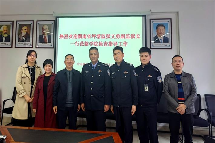 2023年3月15日下午,湖南省坪塘监狱副监狱长文勇、教育改造科科长佘柱、狱政管理科科长击旺和职务犯监区指导员阴霄一行来我院交流访问。学院党总书记周预分、总支委员、办公室主任管贵秋、德法教研室主任陆春花参加了座谈会。座谈会由周预分主持。