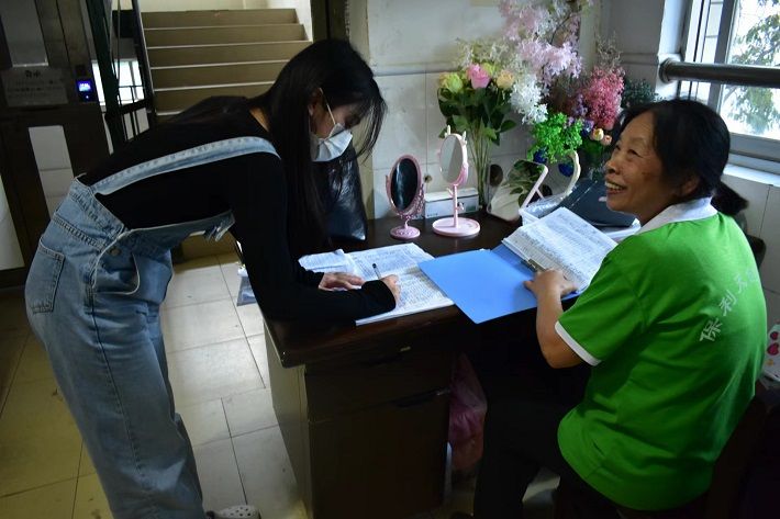 借助微信,志愿者与新生即时沟通,实现无缝衔接,全程提供“亲情式”贴心服务。接人组在门口等候,第一时间接过新生的行李;引导组带领新生到办公室进行信息核对;核验组对新生材料进行核验并引导新生填写信息;搬运组负责将行李送到新生宿舍。