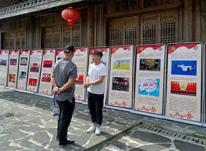 7月2日下午,该校马克思主义学院党总支书记周预分专程前往十八洞村,为村支两委党员干部和宣讲团成员讲专题党课。花垣县委常委、组织部部长鲁民明,花垣县十八洞村第一书记、乡村振兴工作队队长田晓,共青团花垣县委书记龙春云,全国优秀共产党员、十八洞村党支部书记、村委会主任施金通等参加座谈会。周预分结合十八洞村的山乡巨变,从底蕴深厚、优势显著、成就辉煌、前景光明解读了“中国特色社会主义为什么好”这个命题,鼓励青年学子在宣讲中“学史明理、学史增信、学史崇德、学史力行”。活动期间,由中南林业科技大学马克思主义学院和共青团花垣县委指导的百年党史、青年史主题展览在十八洞村举行,吸引了不少群众驻足观看。(文/叶雨 图/张文渊 编辑/梦颖 审核/周预分)