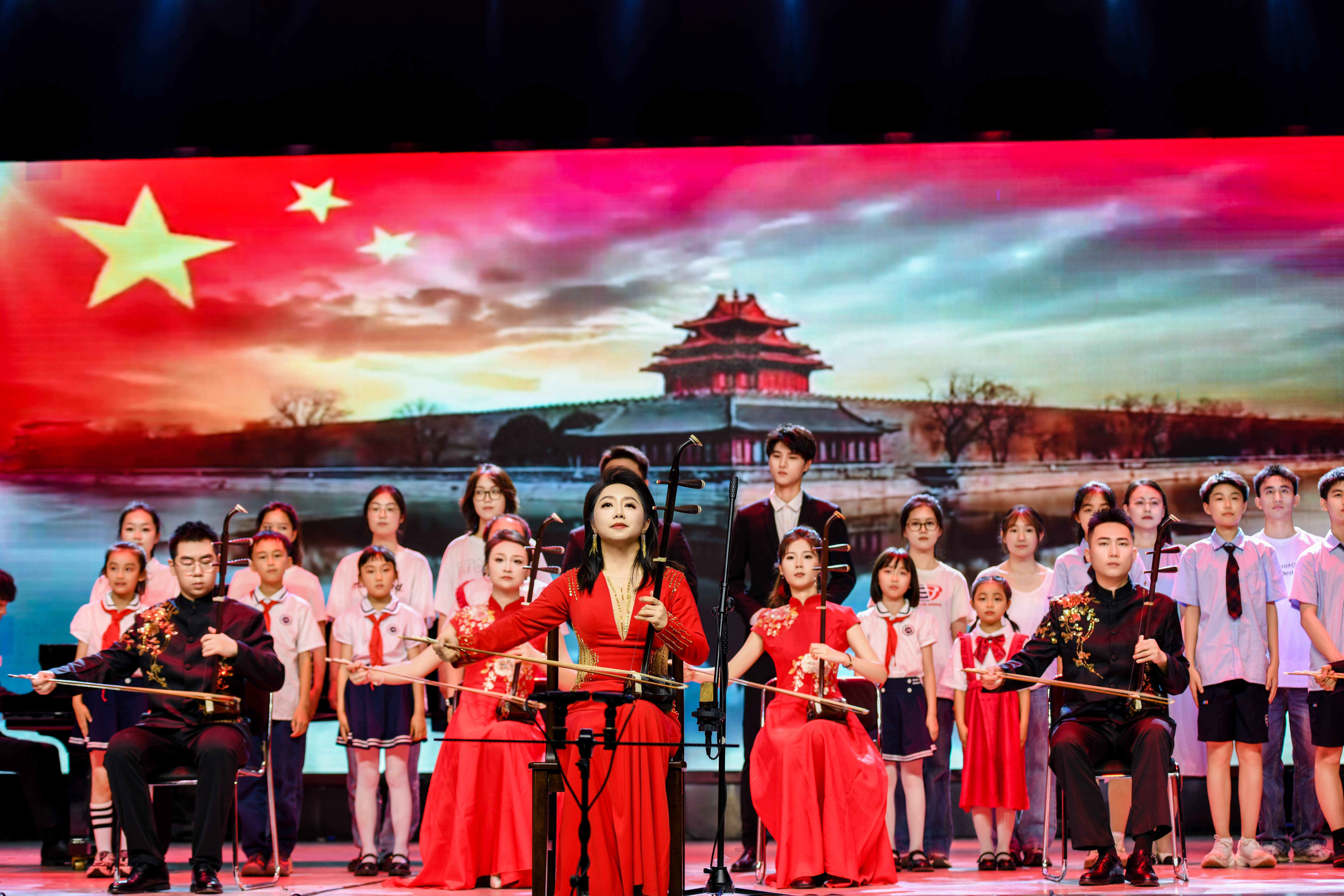 这场艺术思政盛宴,以二胡艺术为独特媒介,用 11 首红色经典曲目串联起中国共产党百年奋斗征程,为现场 400 余名大中小学师生带来了一场 “学段贯通、声情交融”的沉浸式“大思政课”。